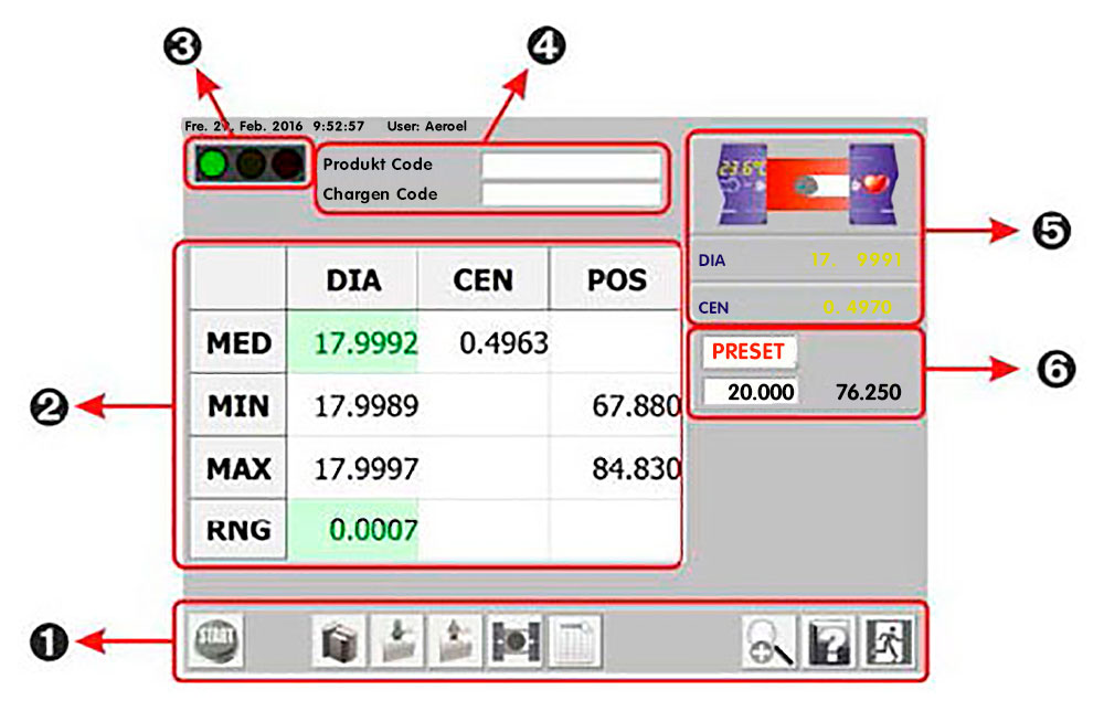 Es werden Durchmesser an vorher festzulegenden Stellen im Durchlauf gemessen. Damit können an einem Bauteil an bis zu 9 Stellen die Durchmesser gemessen werden. Und das innerhalb von zum Beispiel 5 Sekunden, ohne die Position genau anfahren zu müssen. Sehr schnelles Verfahren im Vergleich, wenn man alle Stellen anfahren muss, Start drücken, nächste Position finden.