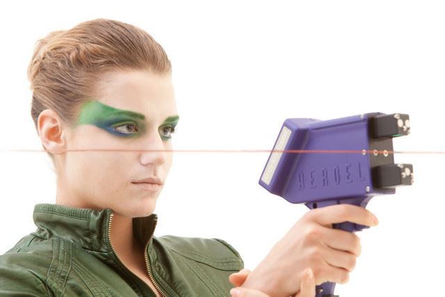 Sie halten das Lasermessgerät wie eine Pistole über den Prüfling. Dies kann ein Dreh oder Schleifteil sein, aber auch ein Draht oder ein Kabel oder ähnliches. Eine zum Patent angemeldete Doppelmessung verhindert Fehlmessungen. Einfach abdrücken und der Messwert wird erfasst und gespeichert – per USB auf jeden PC übertragbar.
